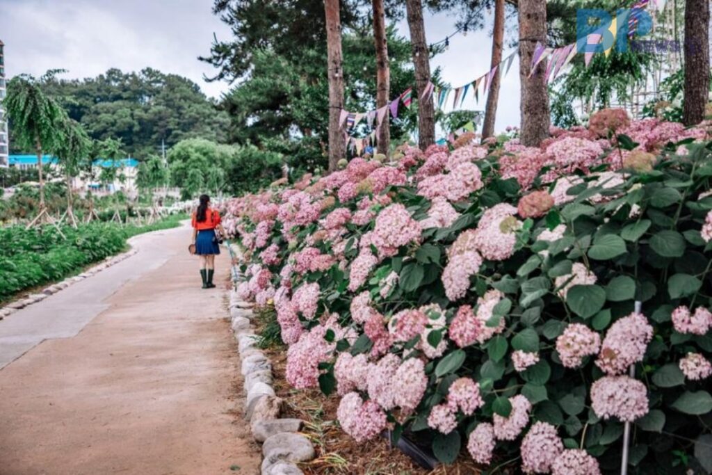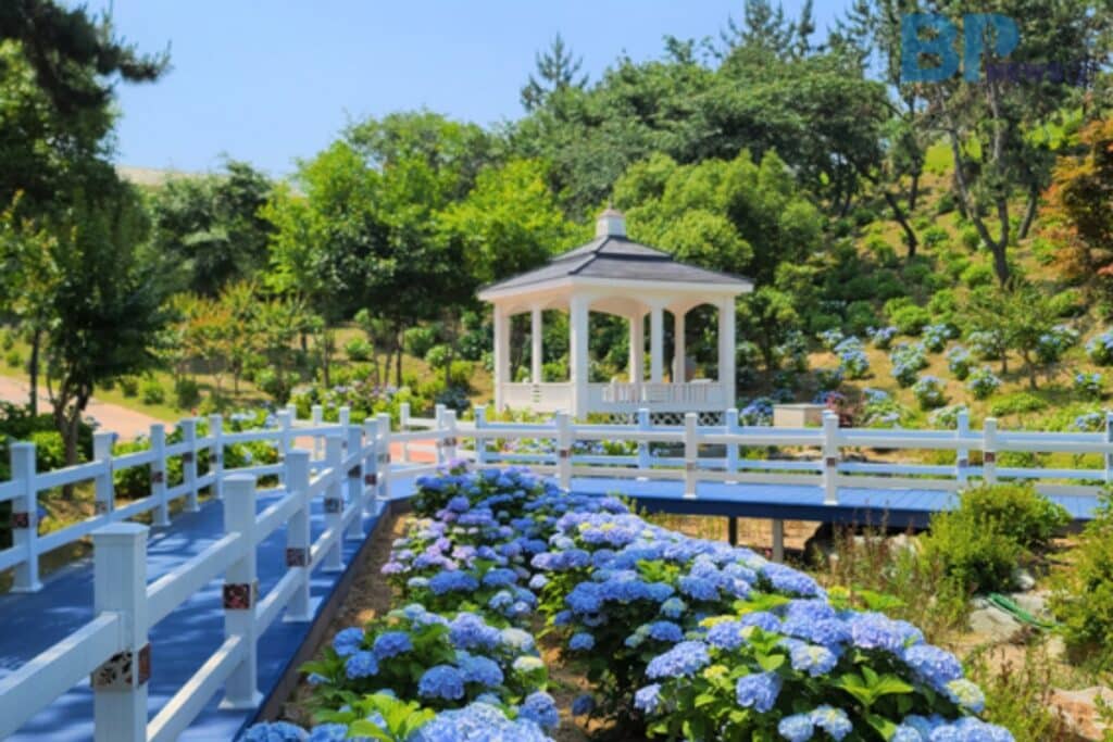 고래문화마을에 자리잡고 있는 오색수국정원은 20 여종의 1만 2천 여본의 다양한 수국이 식재되어 있어 매년 여름마다 푸른빛의 장관을 만나볼 수 있다.