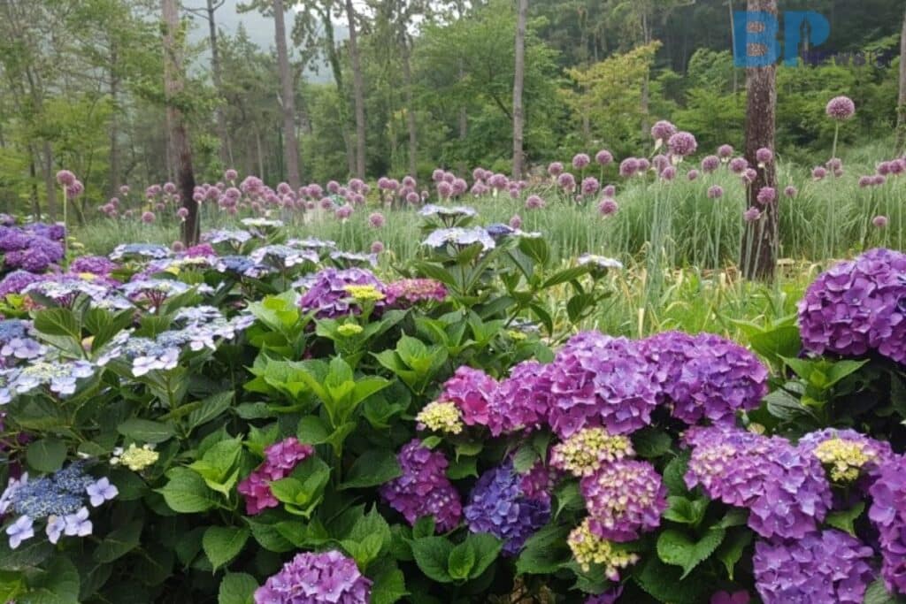 드 넓은 1만명 이상의 면적을 지닌 두륜산 골짜기에서 만나는 수국은 숲 속에서 만날 수 있는 신비로운 풍경이다.