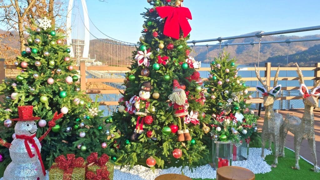 임실군은 12월을 맞아 연말 분위기를 살리고 관광객에게 색다른 볼거리를 제공하기 위해 경관 조성에 나섰다. 매표소 주변에는 높이 6미터에 달하는 대형 트리를 중심으로, 공원 곳곳에 다양한 크기의 장식과 테마 소품들이 설치됐다.