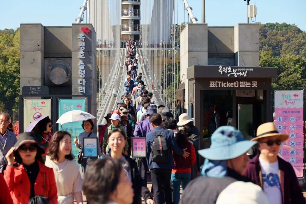 출렁다리와 트리가 한 프레임에 담기는 구도는 가족 단위 방문객뿐 아니라 커플이나 사진 애호가에게도 인기를 얻고 있다.