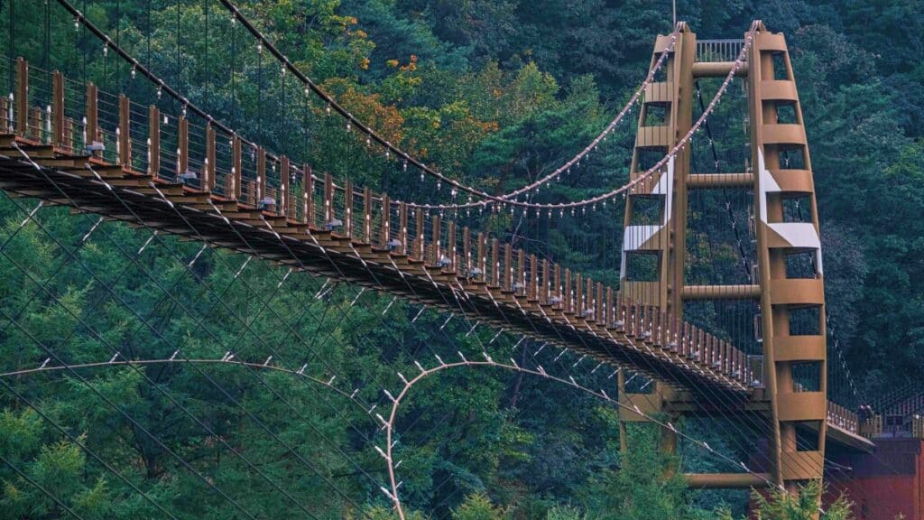 흔들림은 있지만 위험은 없고, 짧지만 인상적인 걷기가 가능해 재방문율도 높은 편이다. 무엇보다 산속 한가운데 놓인 다리 위에서만 마주할 수 있는 풍경이 있어 일상과 거리를 두고 싶은 이들에게 적합하다.