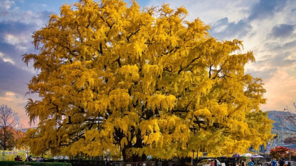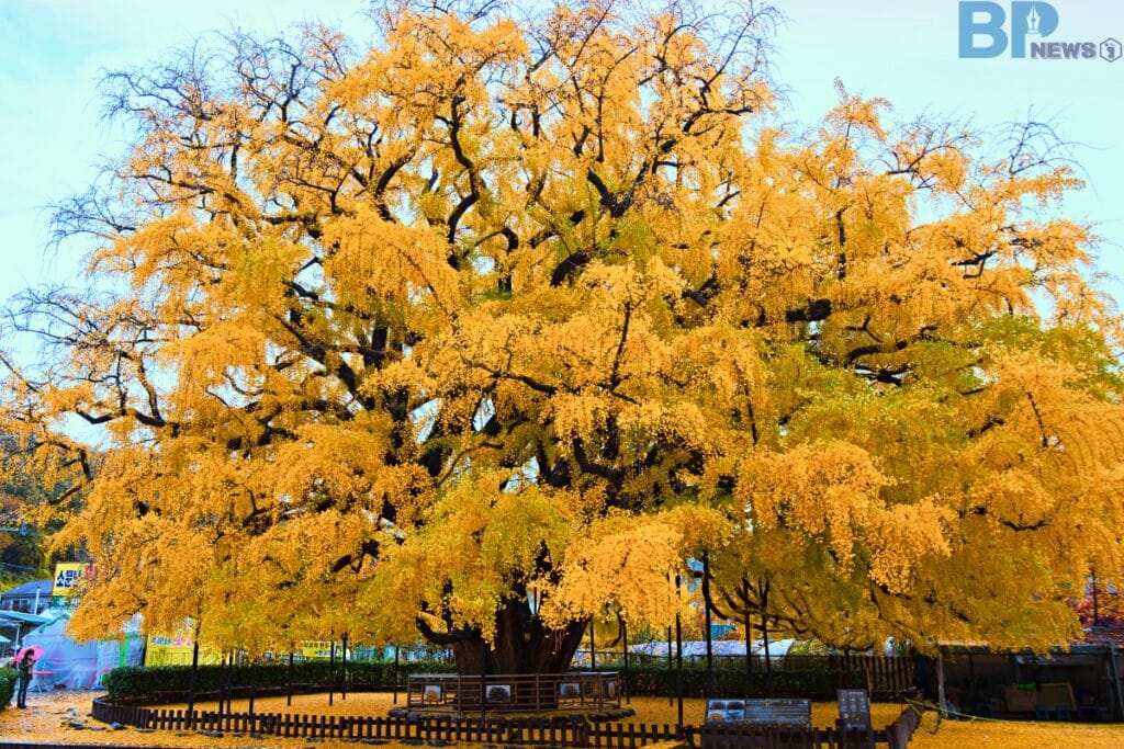 10월 31일 현재 잎은 여전히 푸른색을 띠고 있으며 노란 은행잎이 나무를 감쌀 시점은 약 1~2주 후로 예상된다.