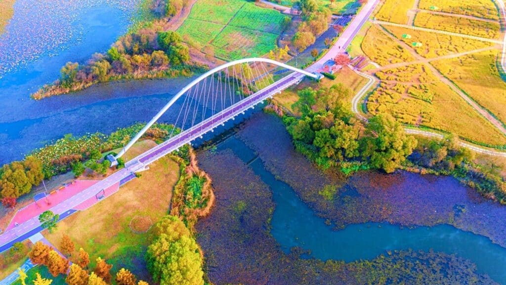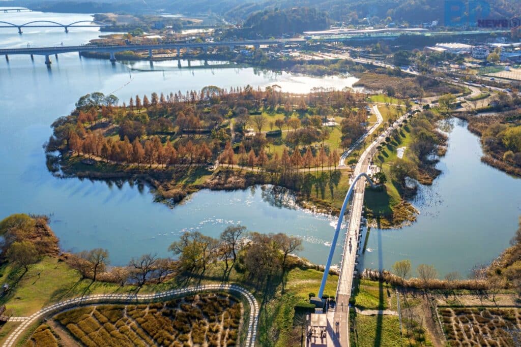 강을 따라 조성된 산책길, 포토존, 나무숲이 어우러진 이곳은 단순한 공원을 넘어 자연과 일상의 경계를 허무는 치유의 공간으로 기능한다.