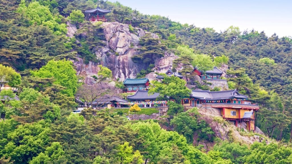 주변엔 물 맑은 계곡과 생태공원이 있어 사찰만으로 끝나지 않는 동선도 마련되어 있다.