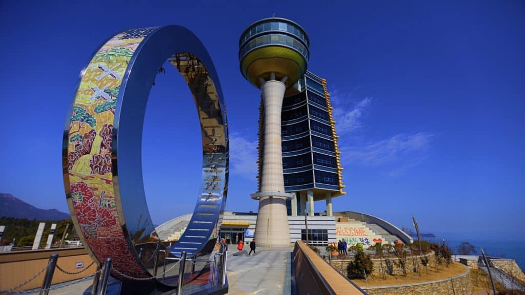 남해안의 전경을 45.9미터 높이에서 조망할 수 있는 해안 전망대에 대해 더 자세히 알아보자.