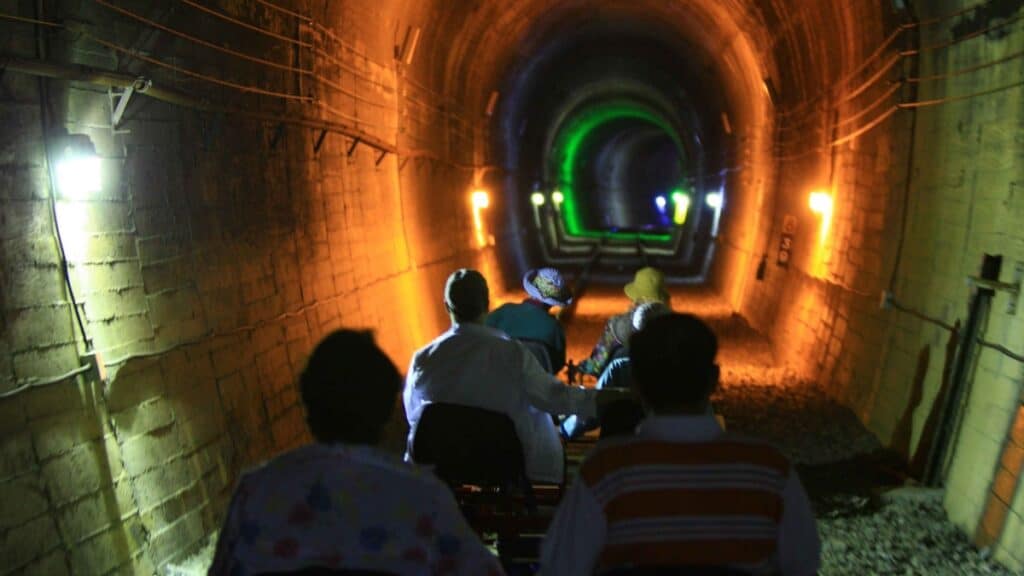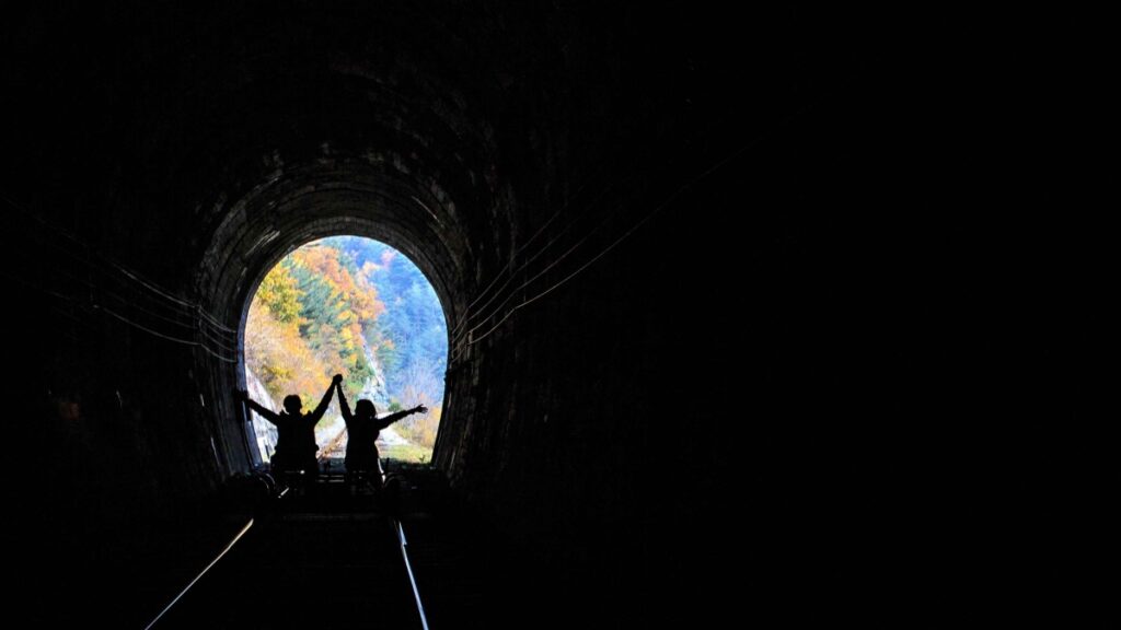 바퀴가 철길 위를 지나는 동안 풍경은 쉴 새 없이 바뀐다. 정선의 계곡과 숲이 교차하고, 기찻길 위로 아슬하게 놓인 철교에서는 강물이 아래로 흐른다. 특히 터널 구간은 이 레일바이크의 백미다.