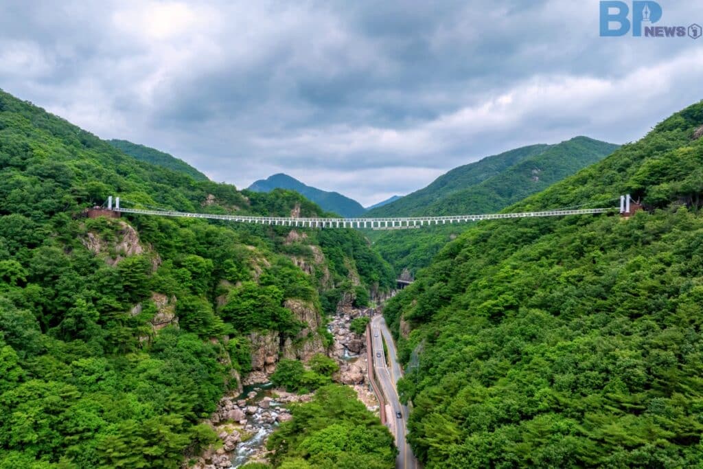 전북 진안군 주천면 대불리 산195-1에 위치한 ‘운일암반일암 구름다리’는 길이 220m, 폭 1.5m의 규모를 자랑하는 보도현수교로, 허공을 걷는 듯한 짜릿한 경험을 선사한다.