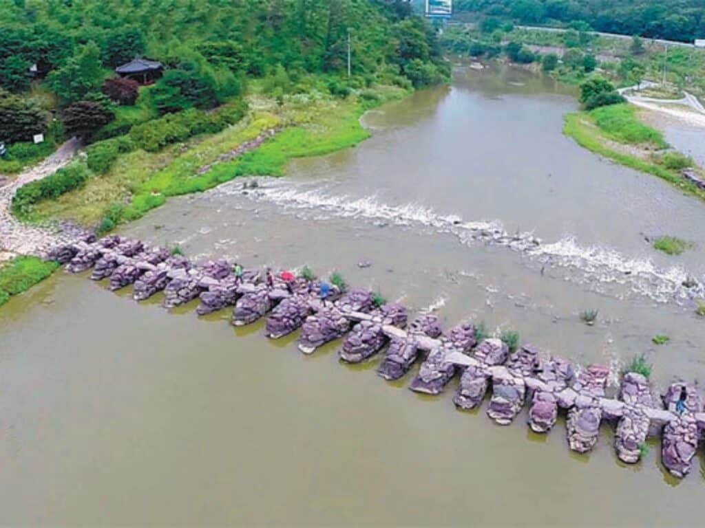 교각을 단단하게 맞물려 쌓아 올린 덕분에 오랜 세월 동안 장마와 홍수에도 유실되지 않고 원형을 유지하고 있다.