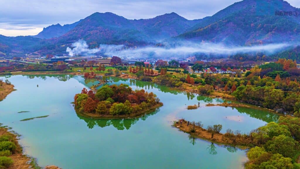수면 위로 피어오른 물안개 너머, 나무들이 하나둘 색을 입기 시작한다. 단풍이 아직 물들지 않은 10월 넷째 주, 풍경은 잠시 숨을 고르는 듯 고요하다.
