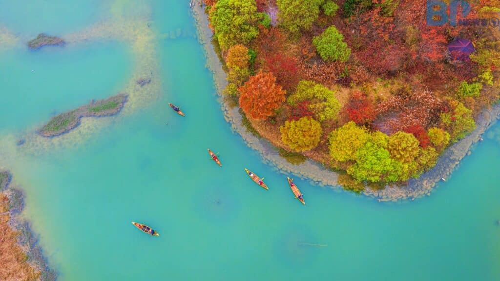 그러나 이 고요함은 오래가지 않는다. 약 1~2주 후면 호수 가장자리를 따라 선 나무들은 붉은빛과 주황빛으로 타오르기 시작하고, 그 색은 물 위로 반사되어 또 하나의 단풍세상을 만들어낸다.