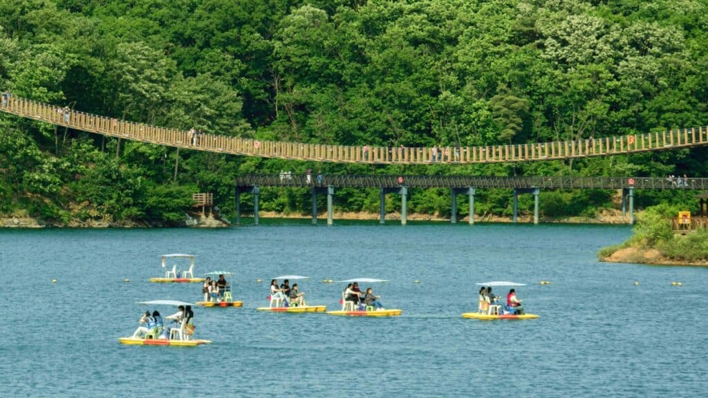 다리의 양 끝은 각각 산책로와 호수 둘레길로 연결돼 있어 짧은 코스의 걷기 여행도 충분히 가능하다. 별도의 등산이나 장비 없이도 자연 속 풍경을 가까이에서 즐길 수 있는 구조는 가벼운 나들이 일정에 잘 맞는다.