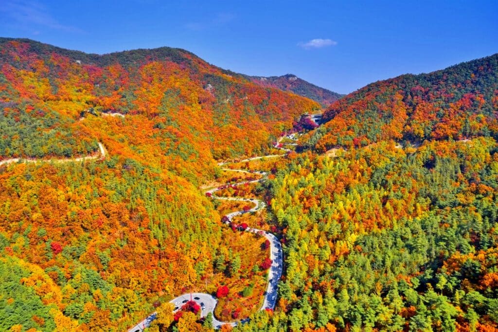 숨겨진 단풍 명승지 중 하나로, 이번 가을에는 말티재와 속리산을 추천한다.