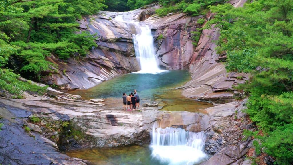 이곳은 인공적인 구조물 하나 없이 오직 물과 바위, 전설만으로 피서객을 끌어모은다. 수십만 년 동안 물이 바위를 깎아 만들어낸 소는 마치 거대한 절구처럼 깊고 넓으며, 바닥이 보이지 않을 만큼 맑고 깊은 물빛이 인상적이다.