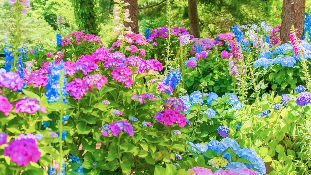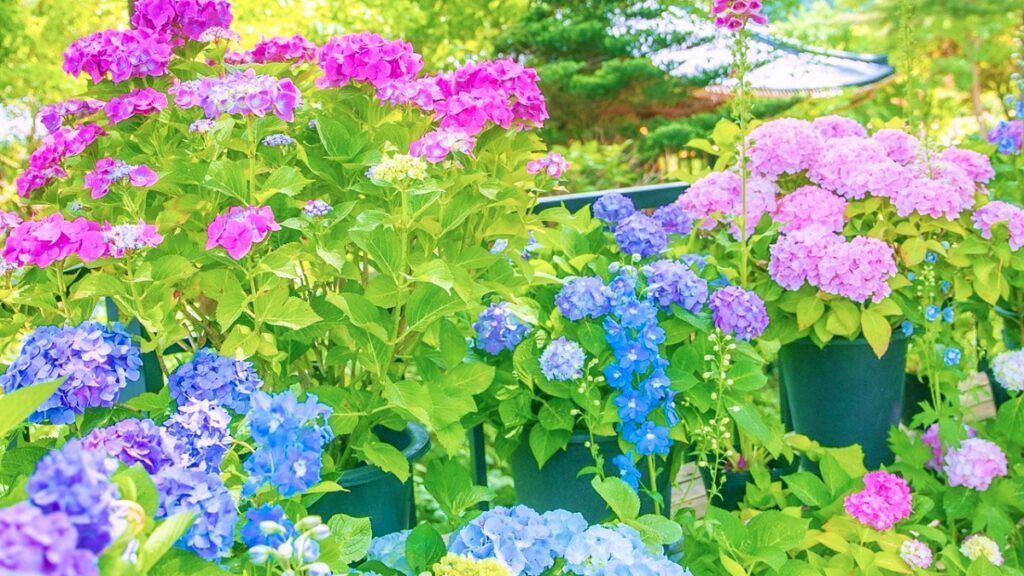 수국은 개화 기간이 비교적 길기 때문에 여름철 내내 꾸준히 감상할 수 있고, 특히 정원이나 테마파크 등에서 집중적으로 조성되며 관람객들의 사진 촬영 명소로도 인기다.