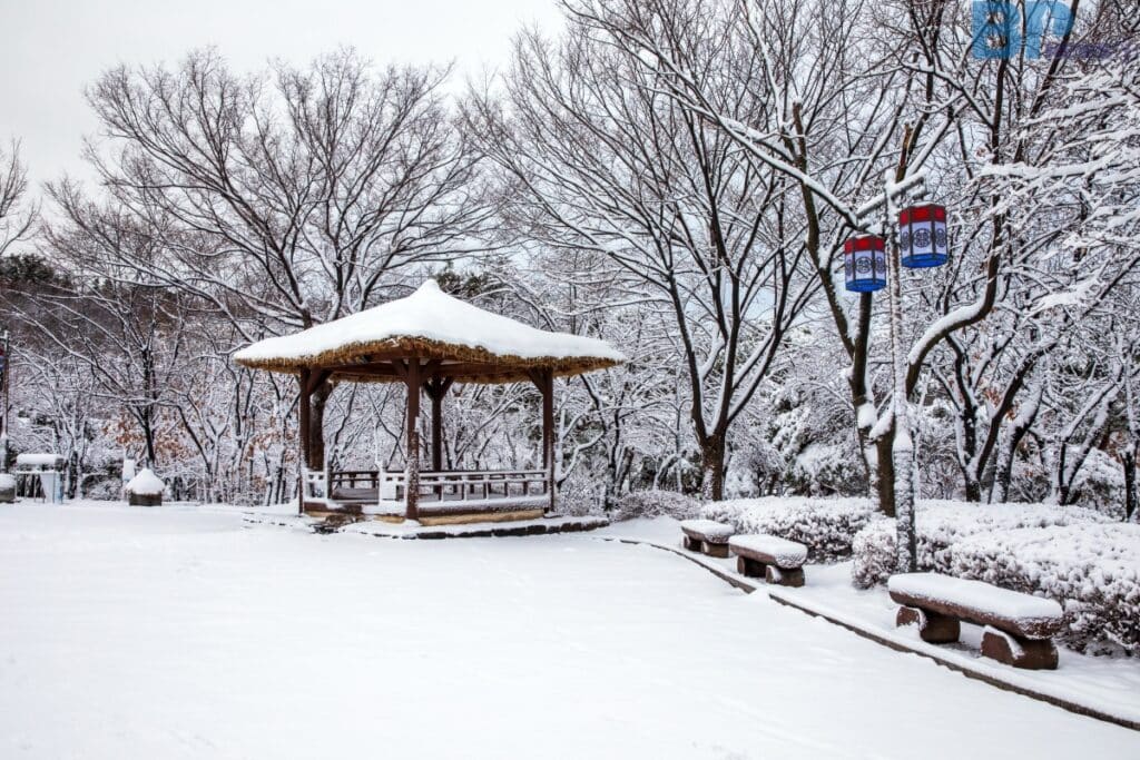 겨울이 시작되는 12월에는 남산골한옥마을의 미감이 더욱 돋보인다. 눈이 내리면 기와지붕과 마당에 정갈하게 쌓인 설경이 연출되며 고요한 분위기 속에서 한옥의 구조미와 선의 아름다움이 또렷하게 드러난다.