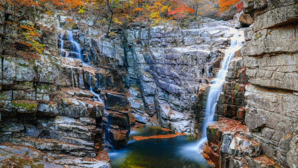 마지막에는 쌍폭포가 이어지며 이 일대는 가을의 붉은 잎들과 어우러져 풍경의 농도를 더한다.