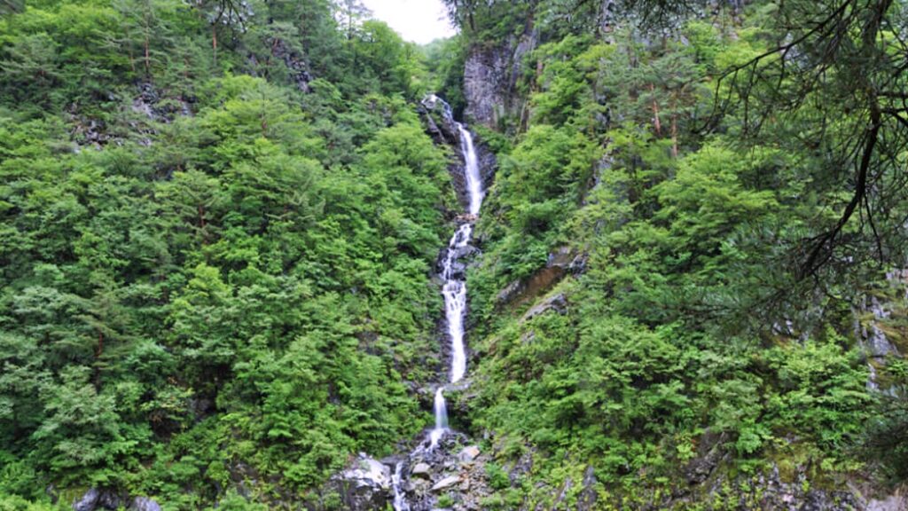 봄에는 폭포 좌우로 철쭉이 피어나며 붉은 기운을 더하고, 여름에는 봉우리 곳곳에서 자라나는 짙은 녹음이 물줄기와 대비되며 시원한 풍광을 만든다.