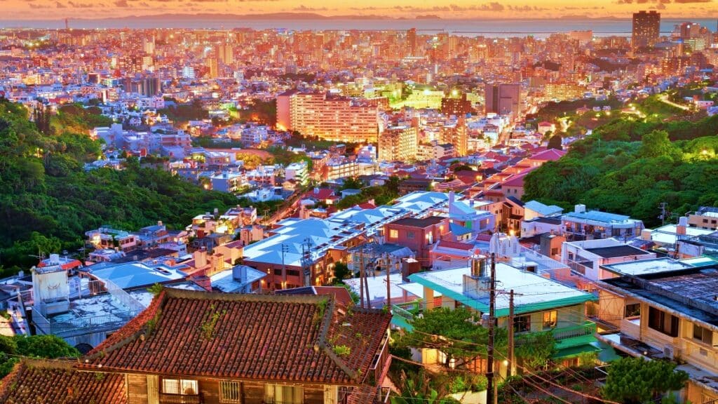 일본 오키나와현에 위치한 오키나와 본섬은 연평균 기온이 높은 아열대 해양성 기후 지역이지만, 12월에는 평균 기온 17~20도 수준으로 낮에는 21~23도까지 오르며 온화한 날씨가 이어진다.