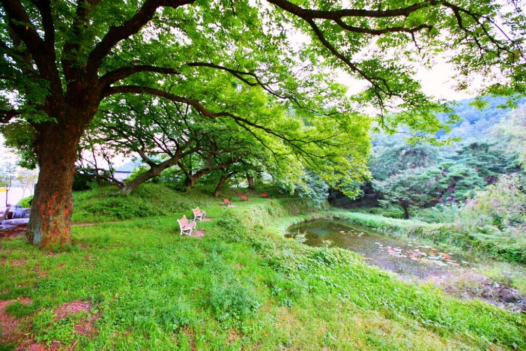 옻골마을 입구에 자리한 두 그루의 거대한 회화나무도 이 마을의 상징적인 존재다. 수령 350년 이상으로 추정되는 이 나무들은 마을의 안녕을 지키는 수호목이자 주민들에게는 ‘선비나무’라 불리며 오랜 세월 사랑받아 왔다.