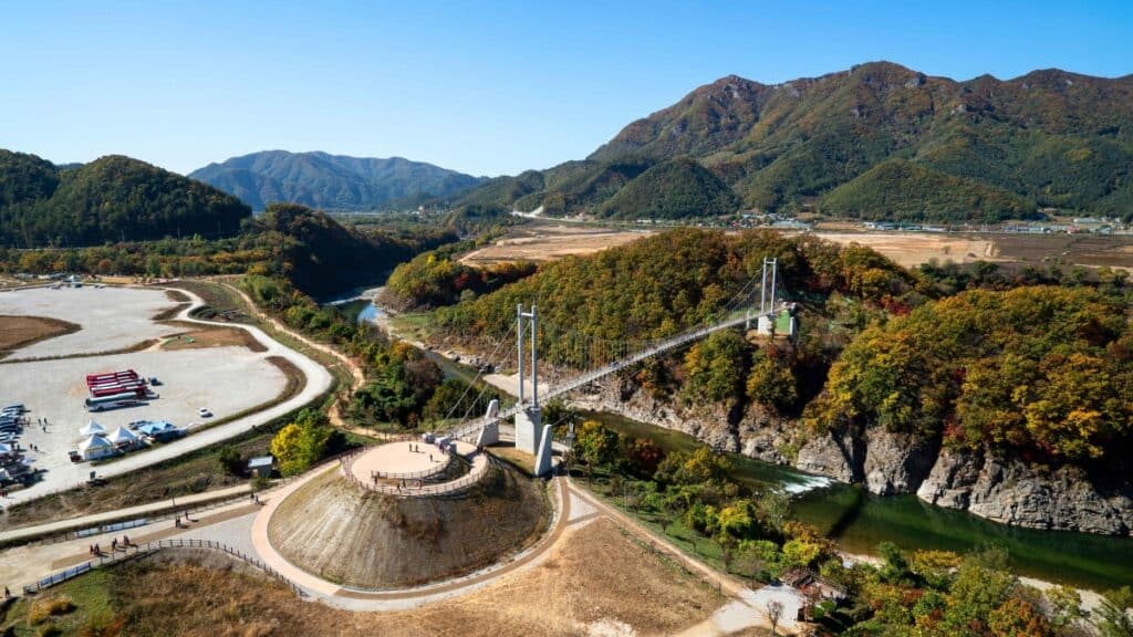 전체 길이는 약 250미터, 폭 2미터로 안정적인 보행이 가능하며 한탄강의 대표 출렁다리인 ‘하늘다리’에서 시작해 건지천 입구까지 이어진다.