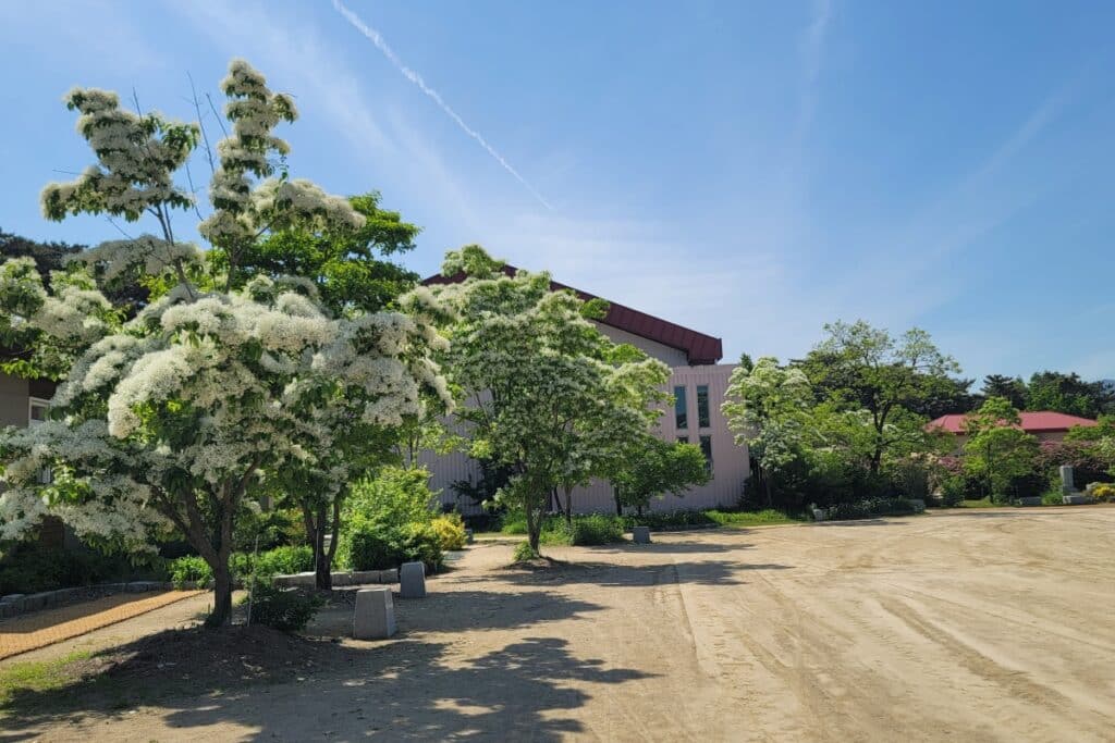 야산에 위치해 있으나 주변 지형을 훼손하지 않고 본연의 모습과 어우러지는 조화를 지향한다.