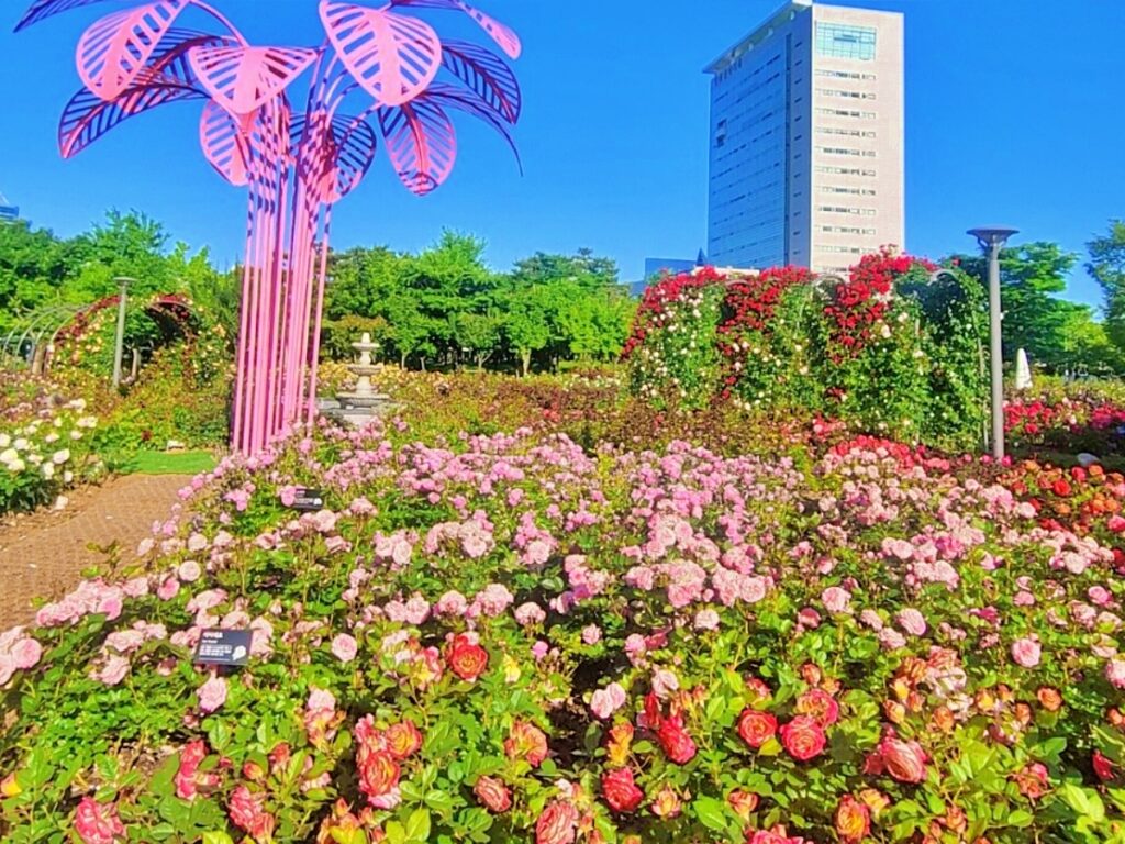 장미원 내에는 지난해 새롭게 조성된 ‘사랑의 서약’ 포토존과 장미터널, 조형물 등이 어우러져 다채로운 볼거리를 제공한다.