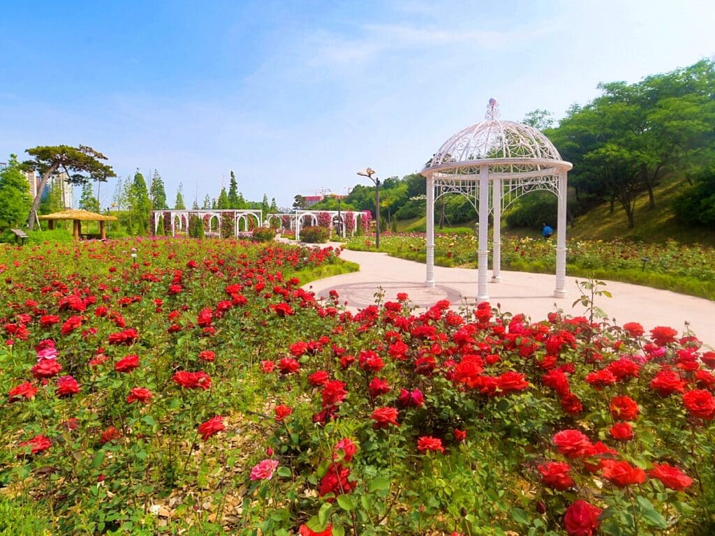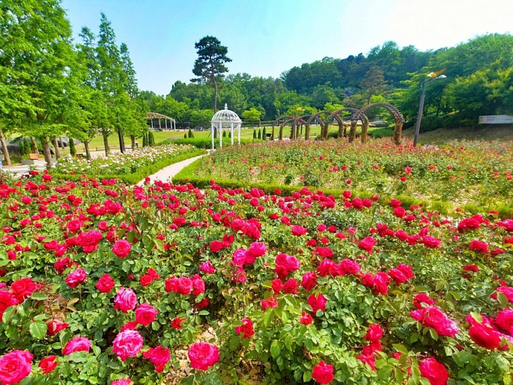 5월부터 10월까지 연이어 피고 지는 26종의 장미들이 정원을 풍성하게 만들며, 장미정원의 중앙에 위치한 원형 분수와 스윙벤치, 그리고 로즈월은 피크닉을 즐기거나 가족, 친구들과 여유로운 시간을 보내기에 최적의 장소이다.