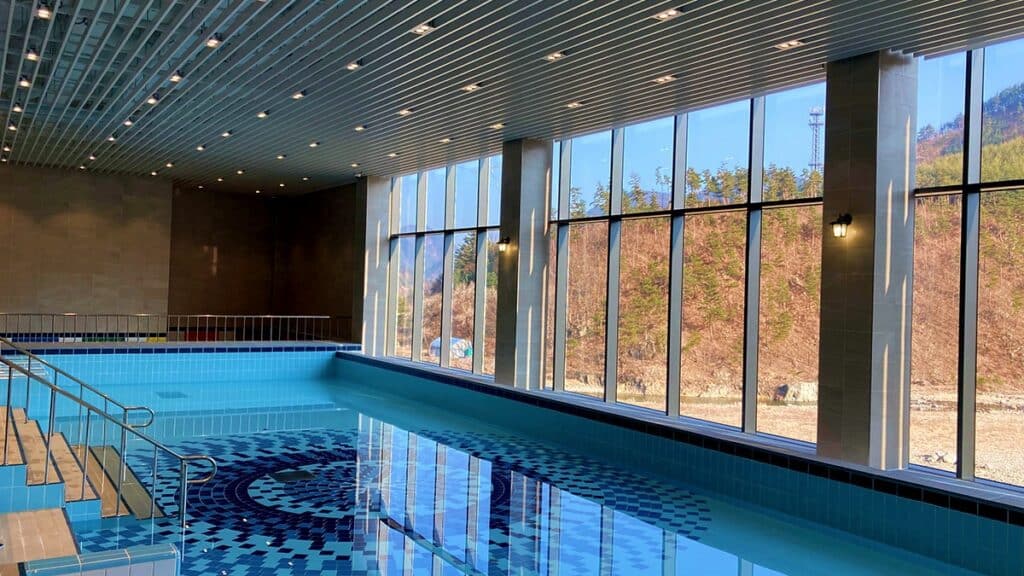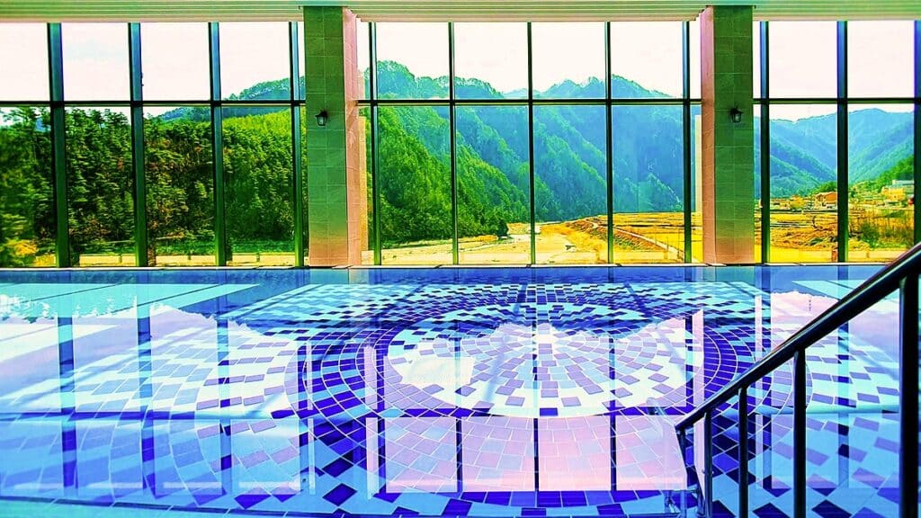 청정 자연 속에 자리해 주변 경관 또한 뛰어나며 공기마저 상쾌하다. 가장 큰 특징은 피부 트러블 완화와 혈액 순환에 효과가 있는 것으로 알려진 유황 온천수를 활용한다는 점이다.