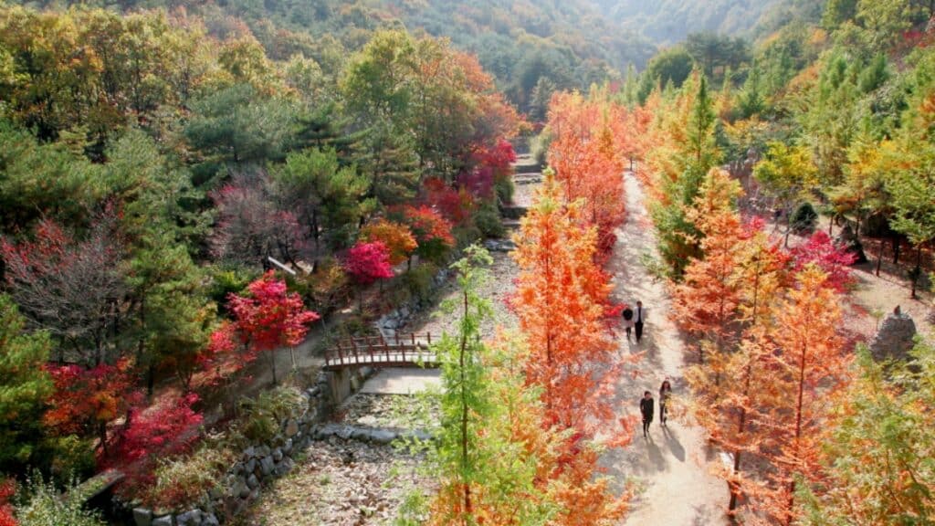 지금처럼 단풍이 천천히 번져가는 시기에 방문하면 군중에 휩쓸리지 않고 숲 고유의 정적과 감각을 오롯이 느낄 수 있다.