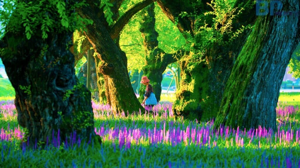 성밖숲이 특히 주목받는 시기는 여름철이다. 8월이 되면 왕버들나무 사이로 야생 맥문동이 피어나 숲 전체가 보랏빛으로 변한다.