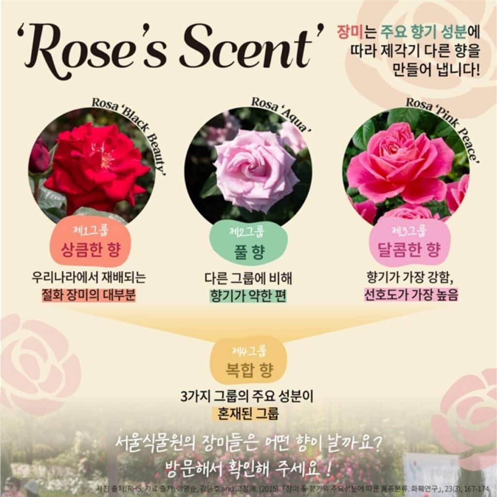 향기 또한 품종에 따라 다르기 때문에 그 향을 따라 움직이는 것만으로도 장미의 다양성을 체감할 수 있다.