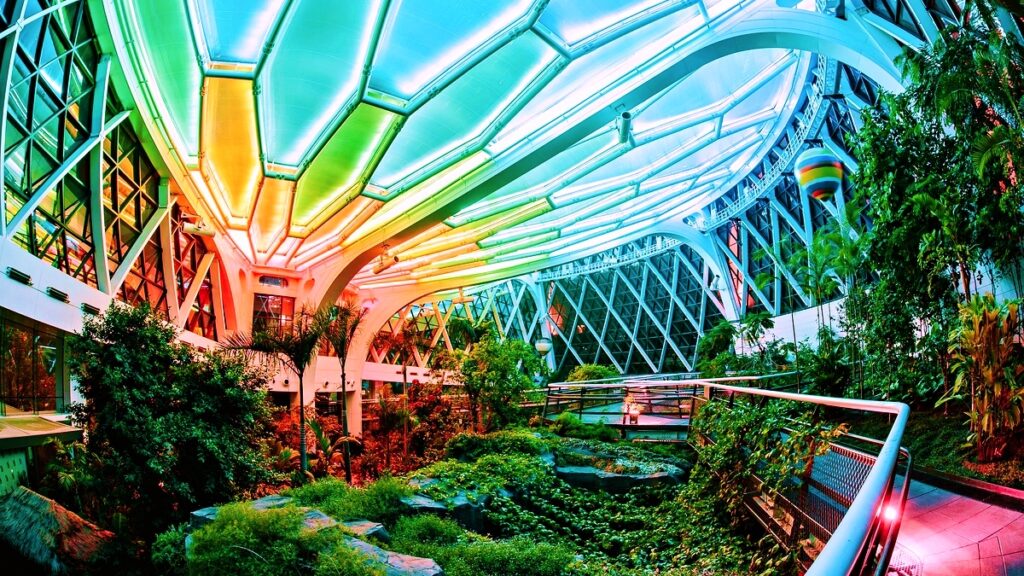 내부에서는 전 세계 12개 도시를 상징하는 식물들이 전시되어 있으며 한겨울에도 초록빛 식생을 가까이에서 관찰할 수 있다.