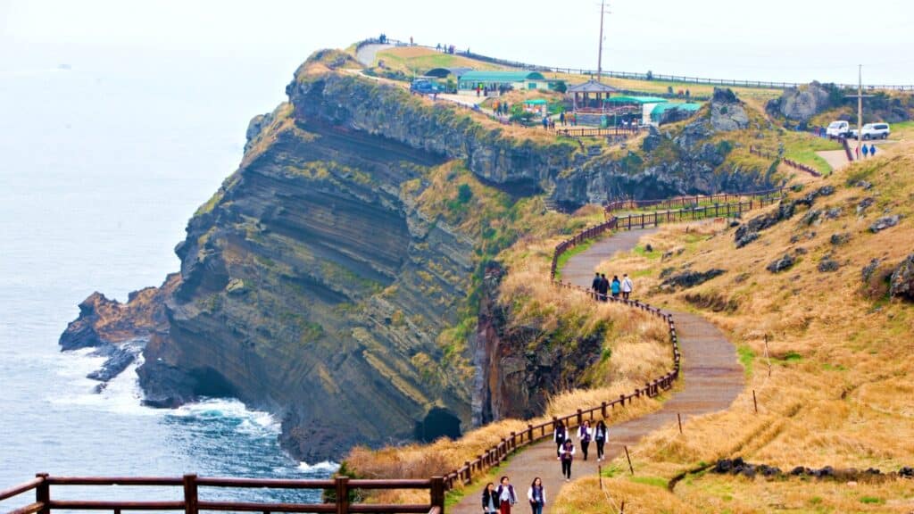 감춰진 진지동굴 60여 개, 세계적으로 드문 이중 분화구 지형, 그 위로 펼쳐지는 바다 전경까지. 처음에는 그저 걷기 좋은 해안 산책길이라 여길 수 있지만, ‘송악산 둘레길’에는 예상 밖의 요소들이 곳곳에 숨어 있다.