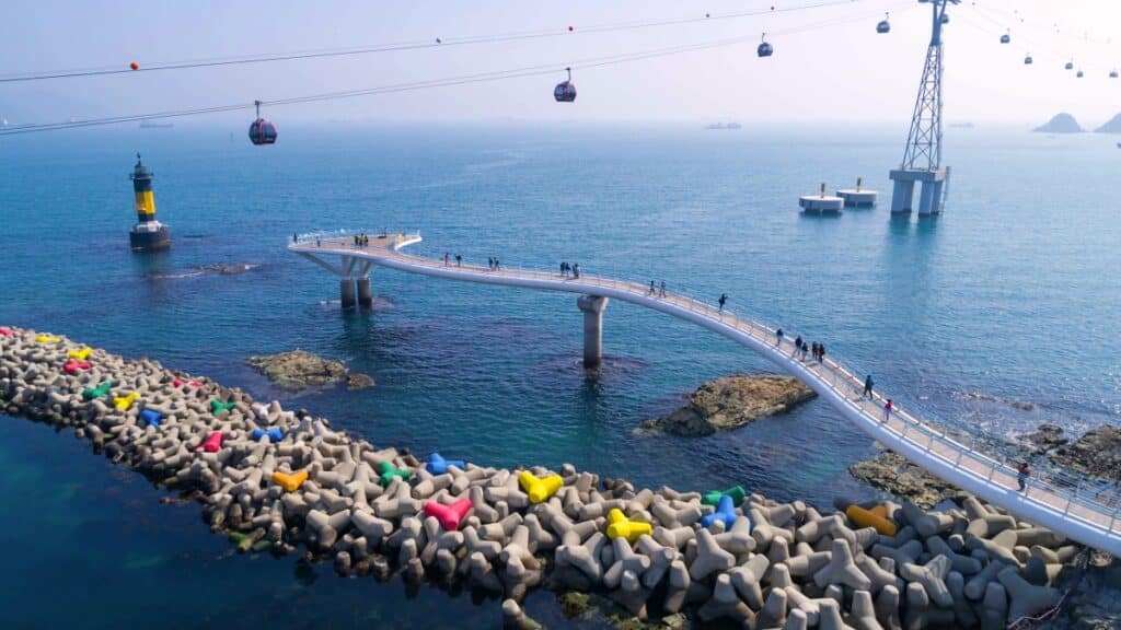 암석과 절벽, 카페와 항구, 과거의 흔적까지 공존하는 이곳은 단순한 해수욕장이 아니다. 구름다리와 산책길을 지나 마주치는 해양생태의 결이 도시와 겹치며 독특한 감각을 만든다.