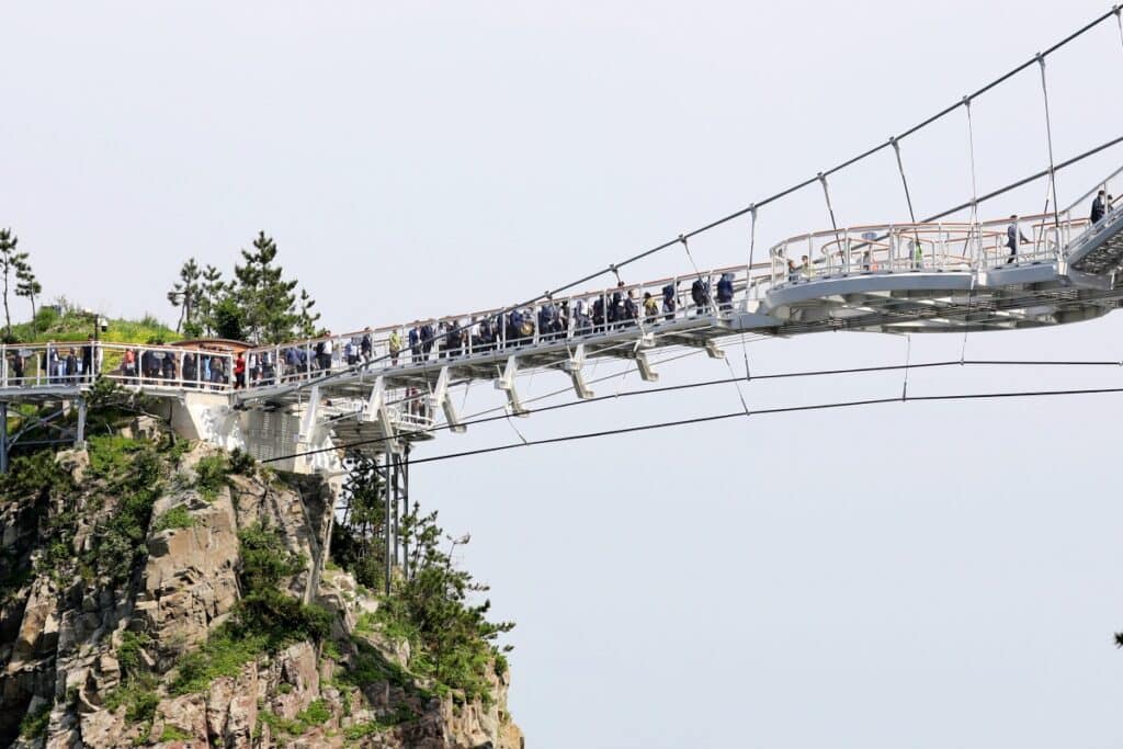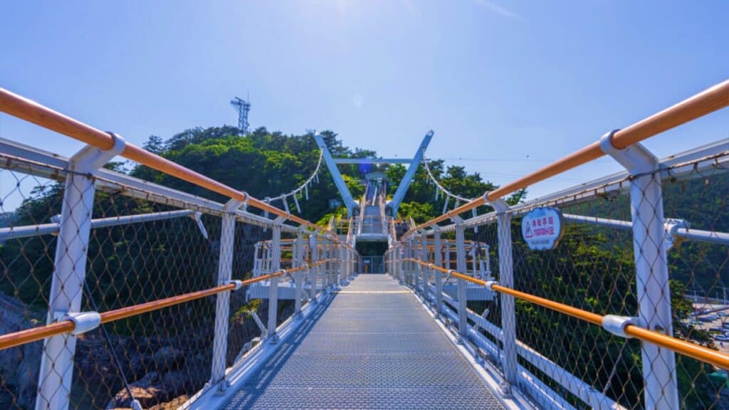 이름처럼 다리 위에 서면 마치 하늘과 바다 사이를 걷는 듯한 느낌이 든다. 총길이 127미터, 폭 2미터 규모의 이 다리는 일부 바닥이 철망 구조로 되어 있어 발밑으로 바로 바다가 내려다보인다.