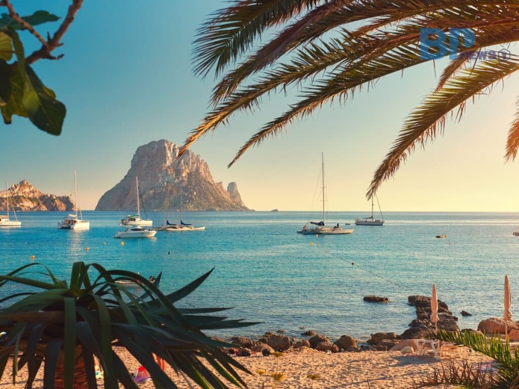 이비사섬 서쪽에 위치한 에스 베드라는 아름다운 바위섬을 배경으로 한 유명한 관광 명소다.