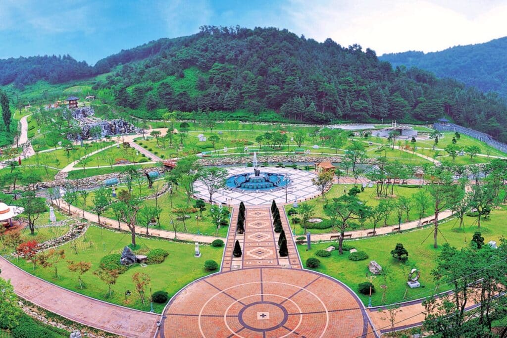 낮에는 조각 작품을, 밤에는 화려한 조명과 분수 쇼가 어우러진 볼거리를 감상하며 여유롭게 산책할 수 있다. 공원 옆에는 ‘김천세계도자기박물관’과 ‘사명대사공원’이 있어 함께 둘러보기 좋다.