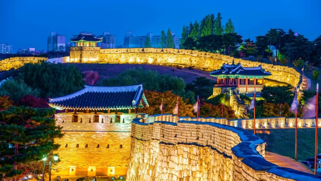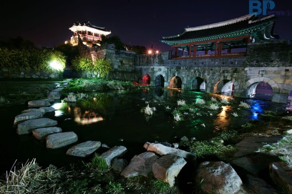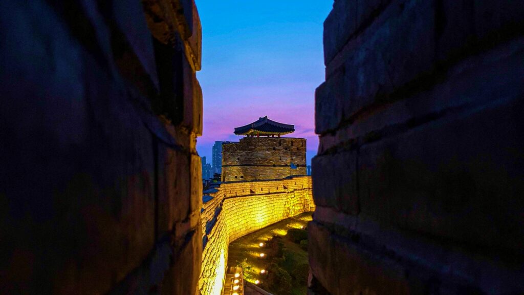 밤이 되면 조명이 은은하게 켜지며 정조가 조선을 바라보던 그 시선 그대로 도시의 야경이 펼쳐진다. 남문인 팔달문과 북문인 장안문은 각각의 형태와 조형미로 야경 속에서도 또렷하게 존재감을 드러낸다.