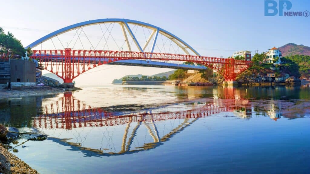 철제 프레임 구조가 주는 강렬한 인상은 비슷하지만, 이곳에서는 전쟁의 무게보다 일상의 여유와 잠깐의 감동이 더 크게 다가온다. 다리 곳곳에는 트릭아트 포토존과 감각적인 조형물이 설치돼 있어 사진 명소로도 손색이 없다.