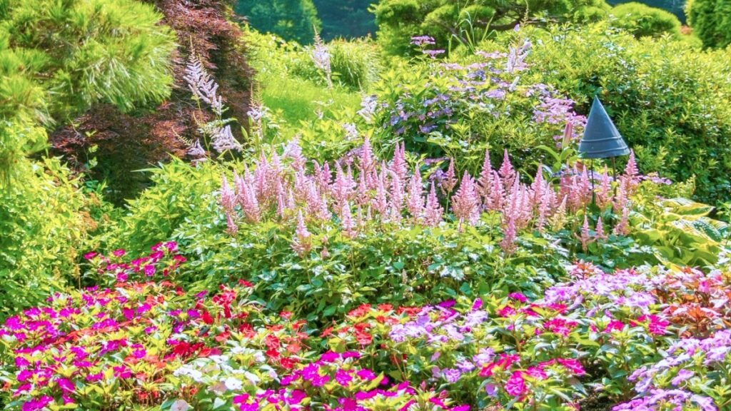 봄에는 튤립과 철쭉, 가을에는 단풍과 국화가 유명하지만, 여름에도 다채로운 생명력이 살아 숨 쉰다. 특히 지금 이 시기에는 무궁화, 루드베키아, 나팔나리, 톱풀, 임파첸스, 수국, 아스틸베 같은 여름꽃들이 정원 곳곳을 물들이고 있다.