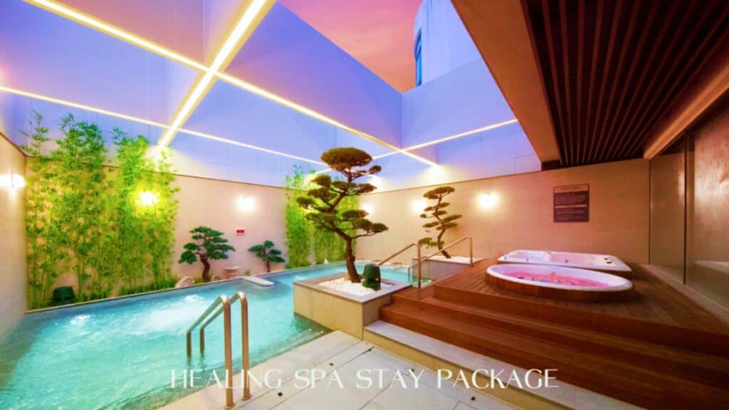스파온은 실내 온천 사우나와 하늘을 바라보며 온기를 즐길 수 있는 야외 노천탕으로 구성되어 있다.