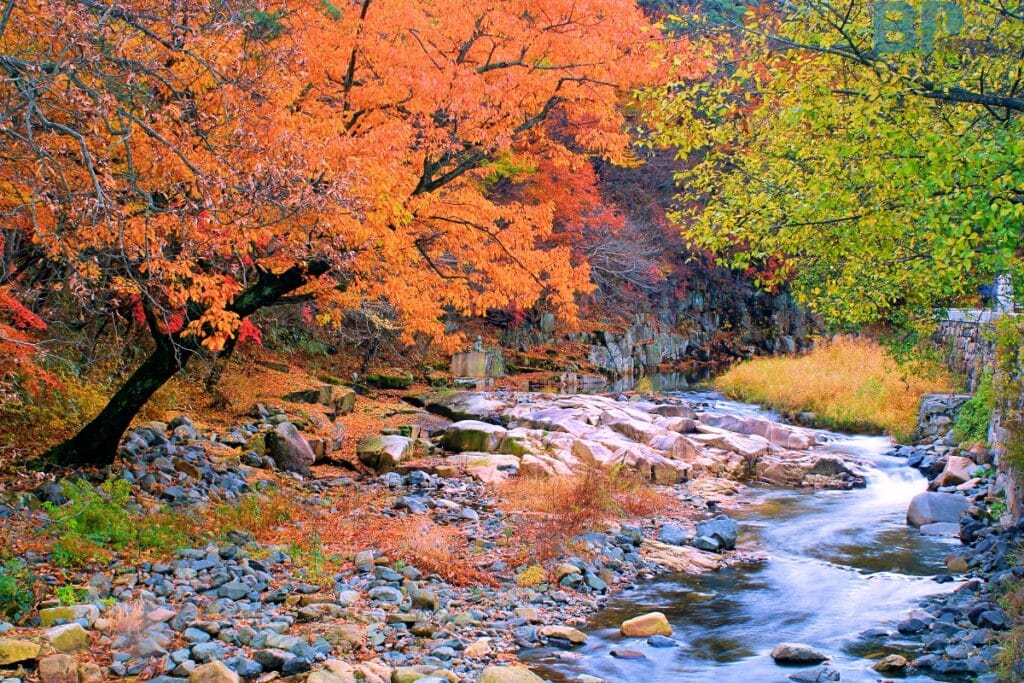 올 가을, 깔끔하게 조성된 통도사에 방문해 녹향 가득한 무풍한송로를 거닐어 보자.