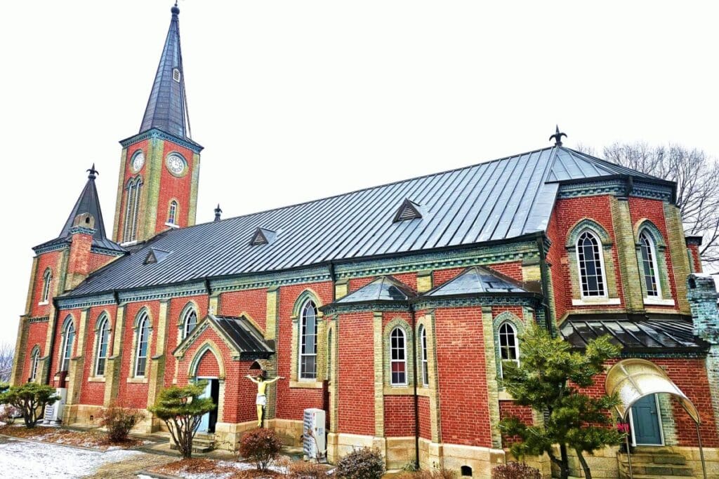 충북 음성군 감곡면 성당길 10번지에 들어서면 마치 유럽의 풍경을 마주하는 듯한 기분이 든다. 충청북도 유형문화재 제188호로 지정된 ‘감곡매괴성모순례지성당’이 웅장한 모습으로 방문객을 맞이하기 때문이다.