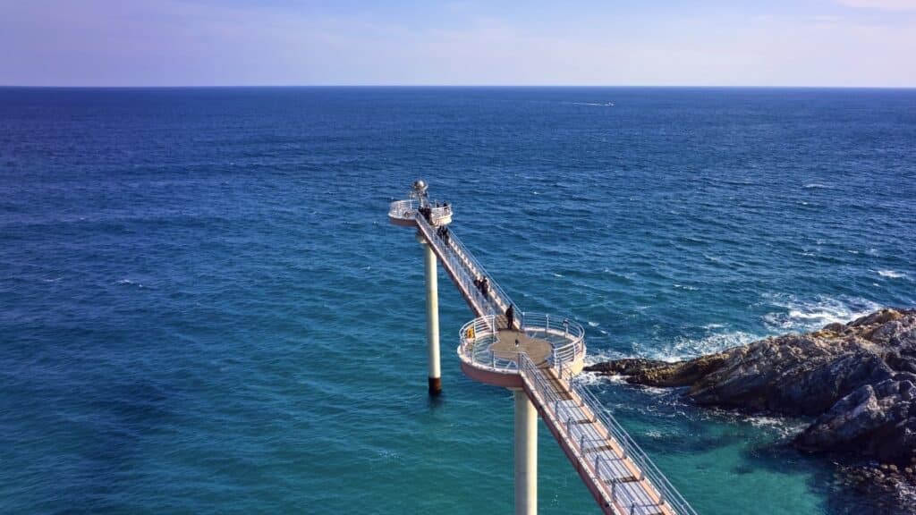 특히 다리 가운데 약 57미터 구간은 강화유리로 마감되어 있어 마치 바다 위를 걷는 듯한 체험이 가능하다.