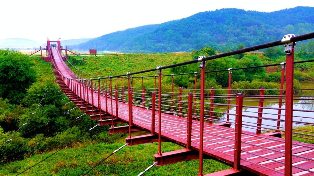 한때 논밭이었던 공간이 생물 다양성의 보고로 바뀌었고, 그 위를 잇는 98.8미터 길이의 현수교는 이 생태 공간에 새로운 동선을 만들어냈다.