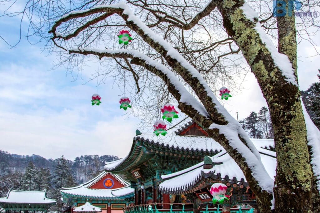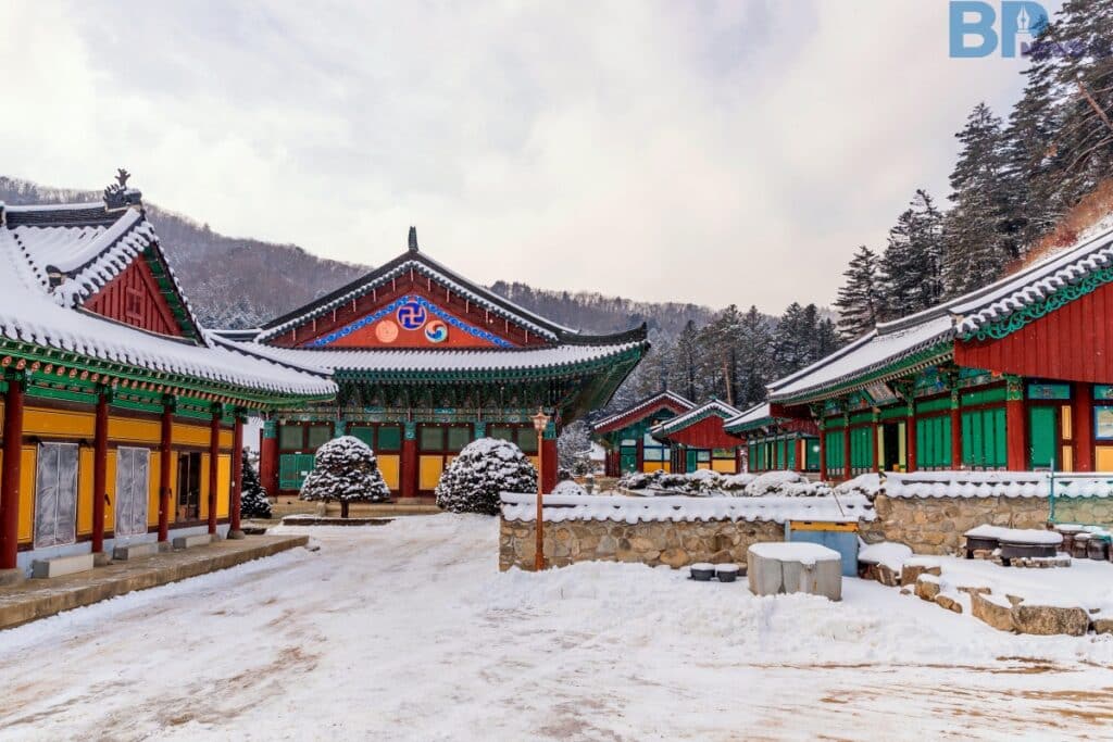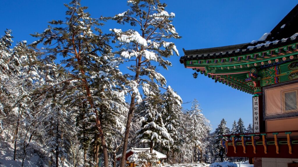 새하얀 설경 속에서 전나무 숲길이 길게 이어지고, 그 끝에 천년 고찰이 조용히 모습을 드러낸다. 겨울 산사의 매력은 화려함이 아니라 고요함에서 시작된다.