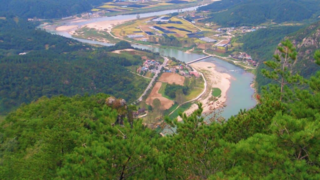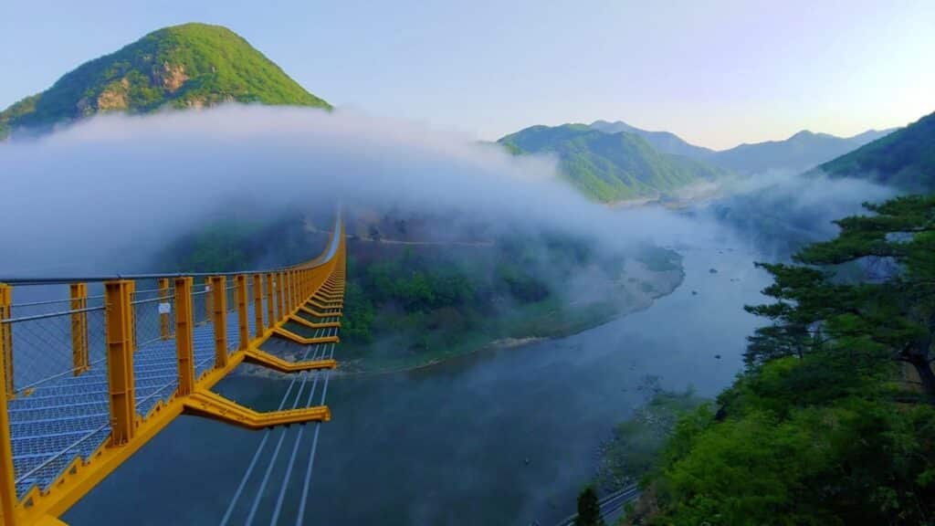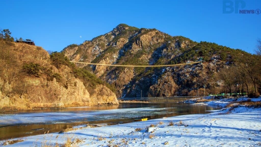 다리 위에 오르면 발끝을 따라 진동이 전해지고, 아래로는 금강 상류의 물줄기가 흘러 산세와 수면이 한눈에 들어온다.