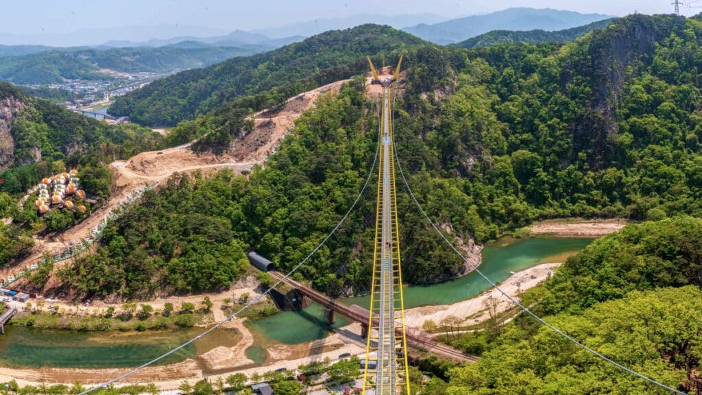 한쪽에는 발길마다 흔들리는 출렁다리와 절벽 옆 스카이타워가 기다리고, 다른 한편에는 끝없는 돌계단과 가파른 오르막이 정상을 향해 이어진다.