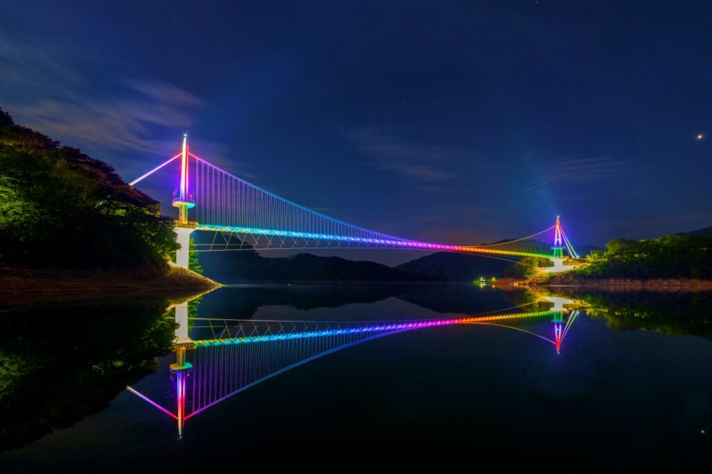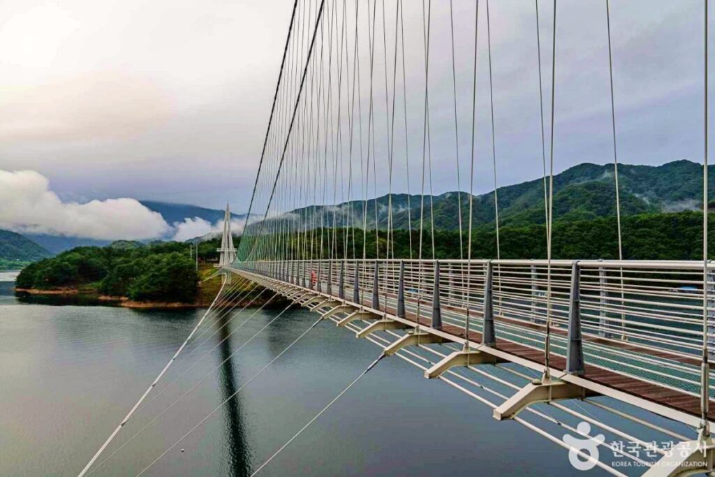 2022년에 개통된 ‘상무룡 출렁다리'(강원 양구군 양구읍 월명리 산1-53)는 강원도 양구군의 대표적인 관광 명소 중 하나로, 드넓게 펼쳐진 호수와 주변의 아름다운 자연경관을 즐기기에 제격이다.