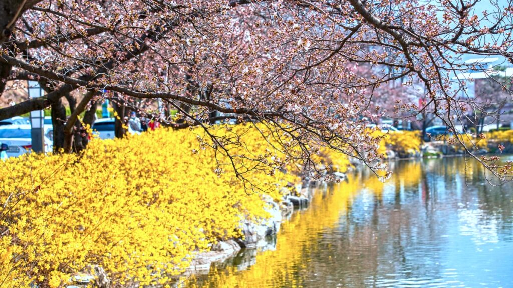 현재 3월 초에는 꽃이 피지 않았지만 기온이 오르는 시기가 되면 주변 풍경이 빠르게 바뀐다.